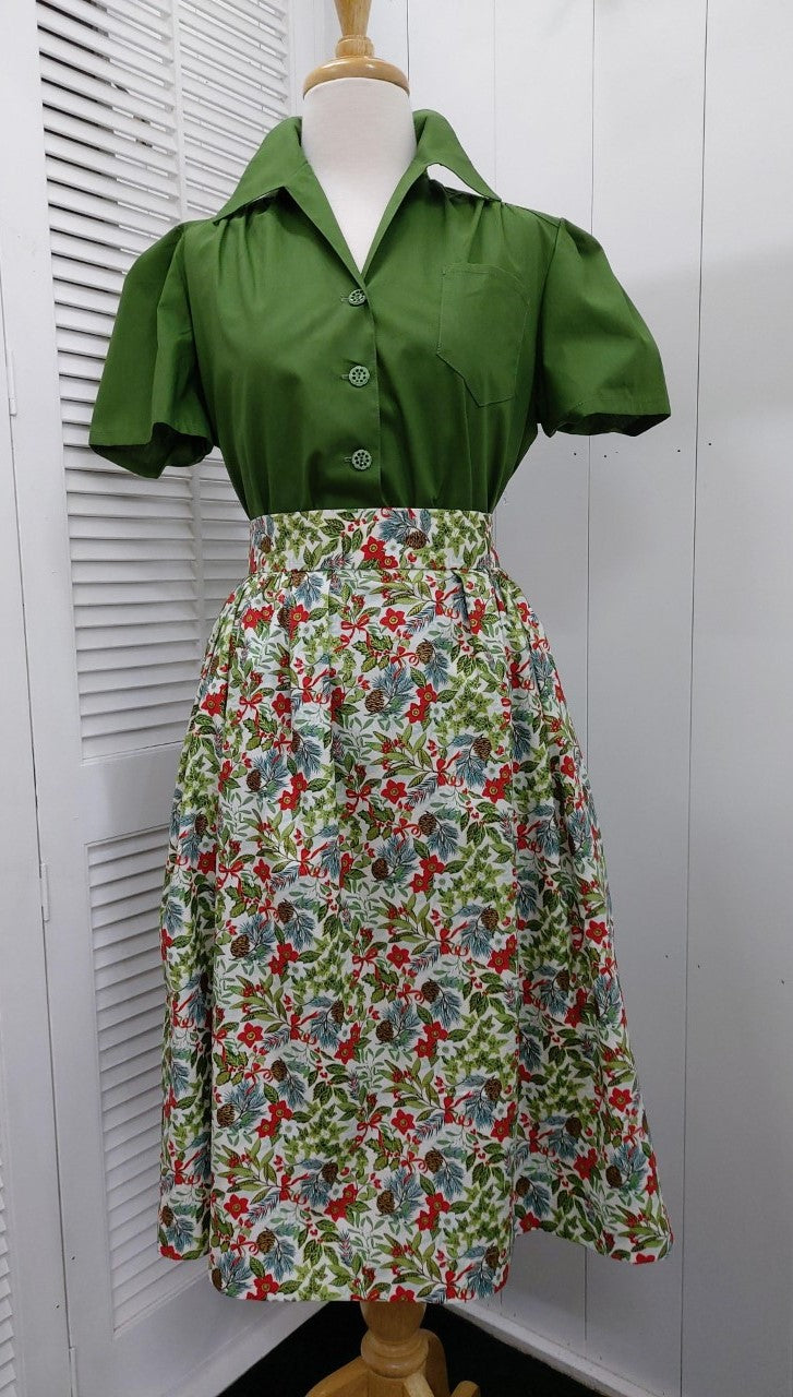 Linda McCarthy Studio Pinecone Floral Christmas Skirt